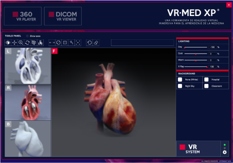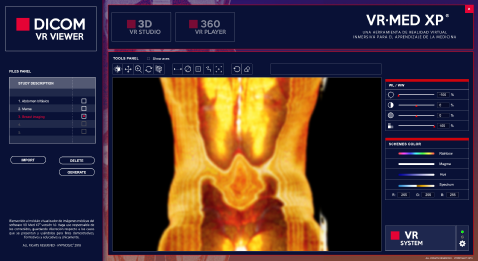 La herramienta cuenta con 3 módulos que permiten integrar diferentes tipos de contenido: imágenes, videos, modelos 3d y volúmenes dicom. Así, el operador puede diseñar las sesiones con el contenido apto para su estudio, visualización, análisis, etc.